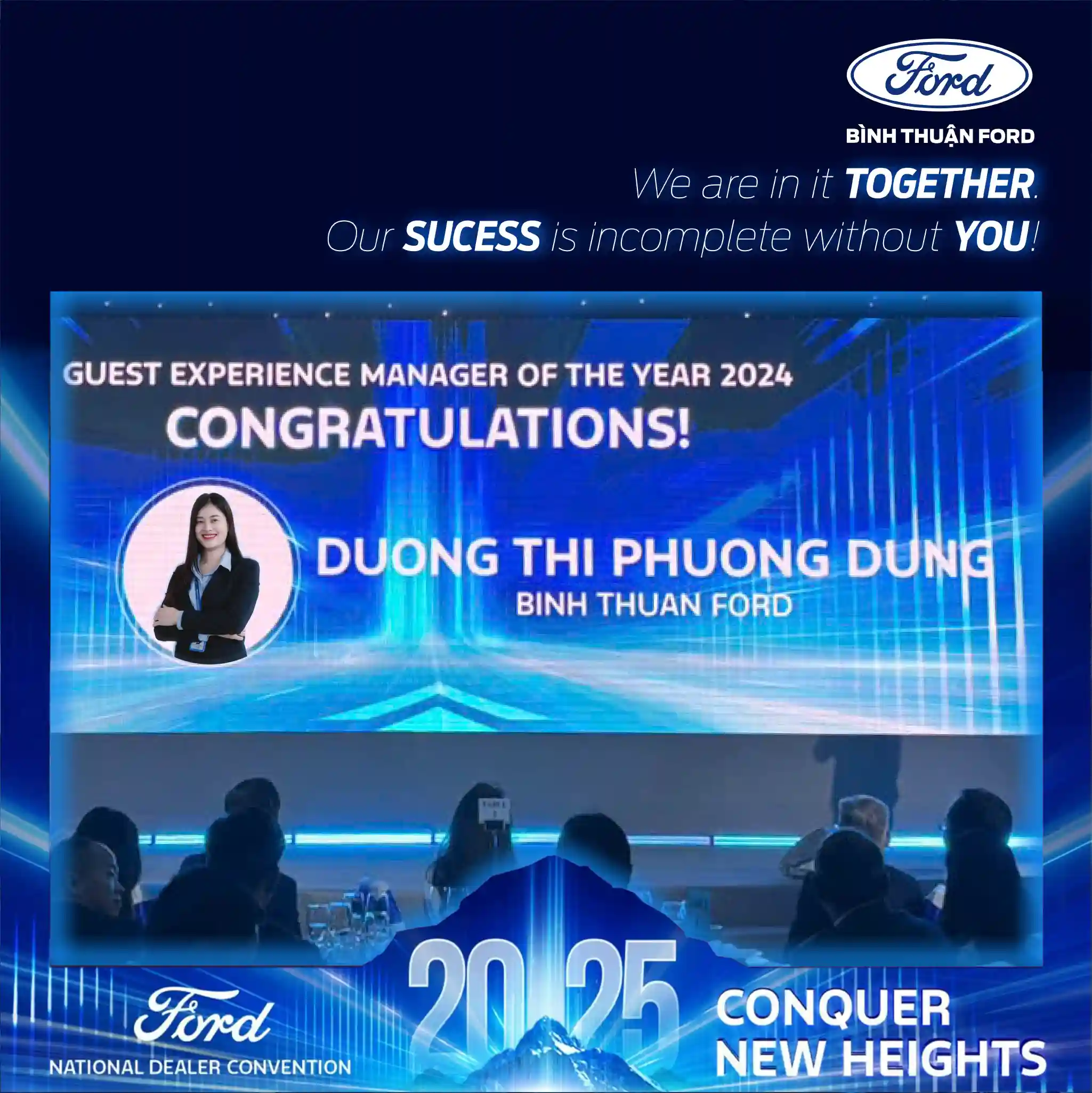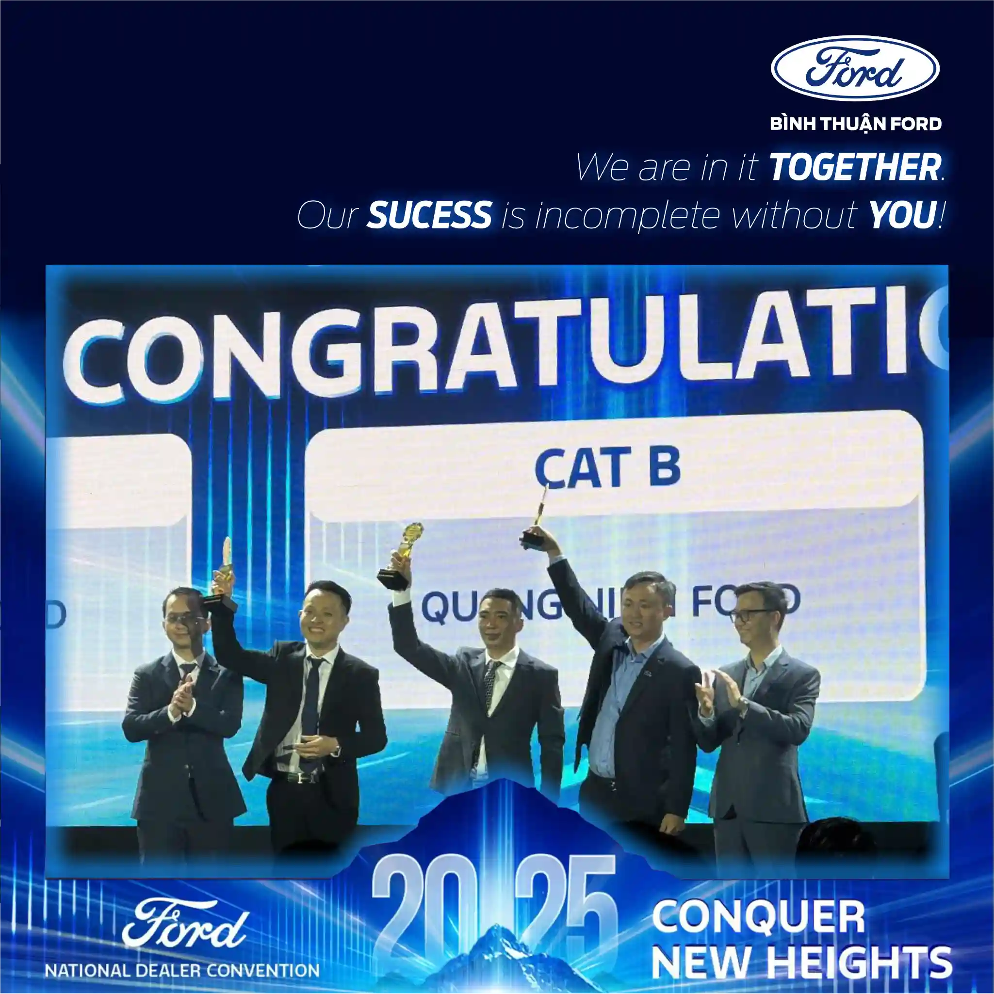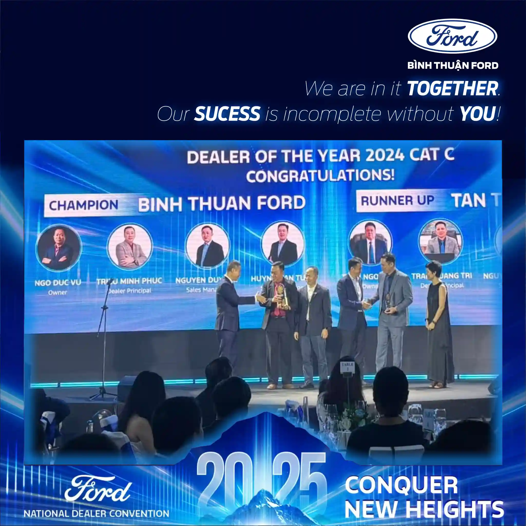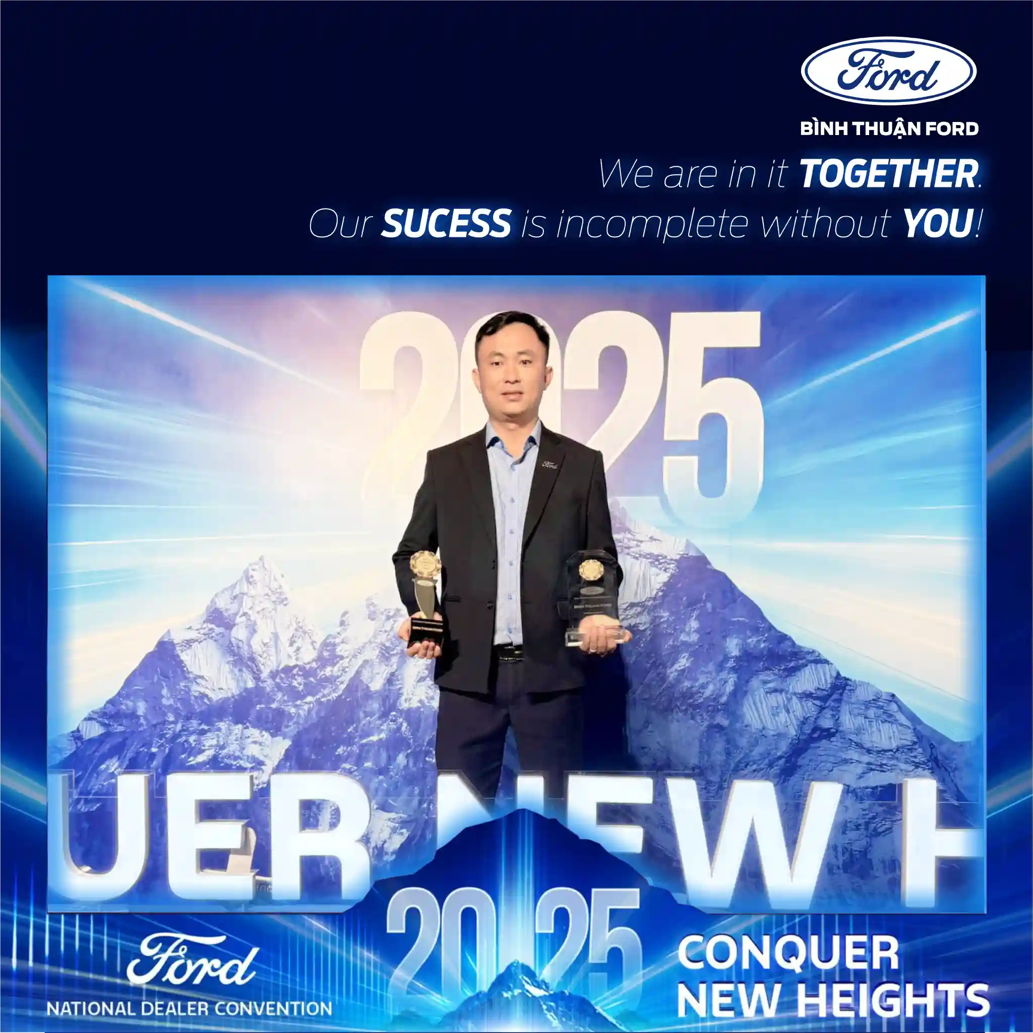 Trong niềm hân hoan về các thành tích đạt được, Ông Triệu Minh Phúc - Tổng Giám Đốc Bình Thuận Ford đã có những chia sẻ: “Nỗ lực của Toàn thể CBNV với tinh thần "Customer First" đã được tưởng thưởng xứng đáng! CẢM ƠN TẤT CẢ CÁC BẠN! We are in It TOGETHER, Our SUCCESS is Incomplete WITHOUT YOU"