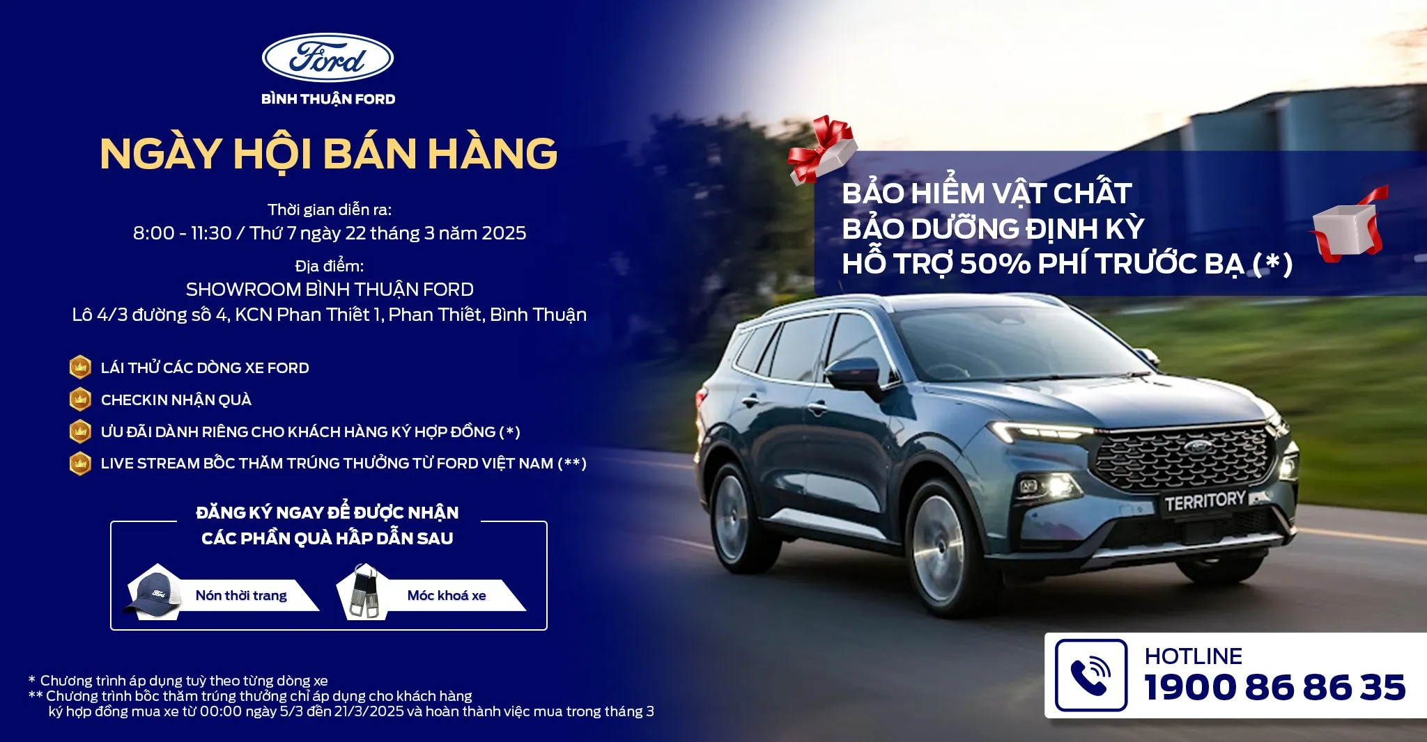 Ngoài ra, Bình Thuận Ford sẽ kết hợp phát sóng chương trình "LIVESTREAM BỐC THĂM TRÚNG THƯỞNG TỪ FORD VIỆT NAM (**) ngay trong khi diễn ra ngày hội.
