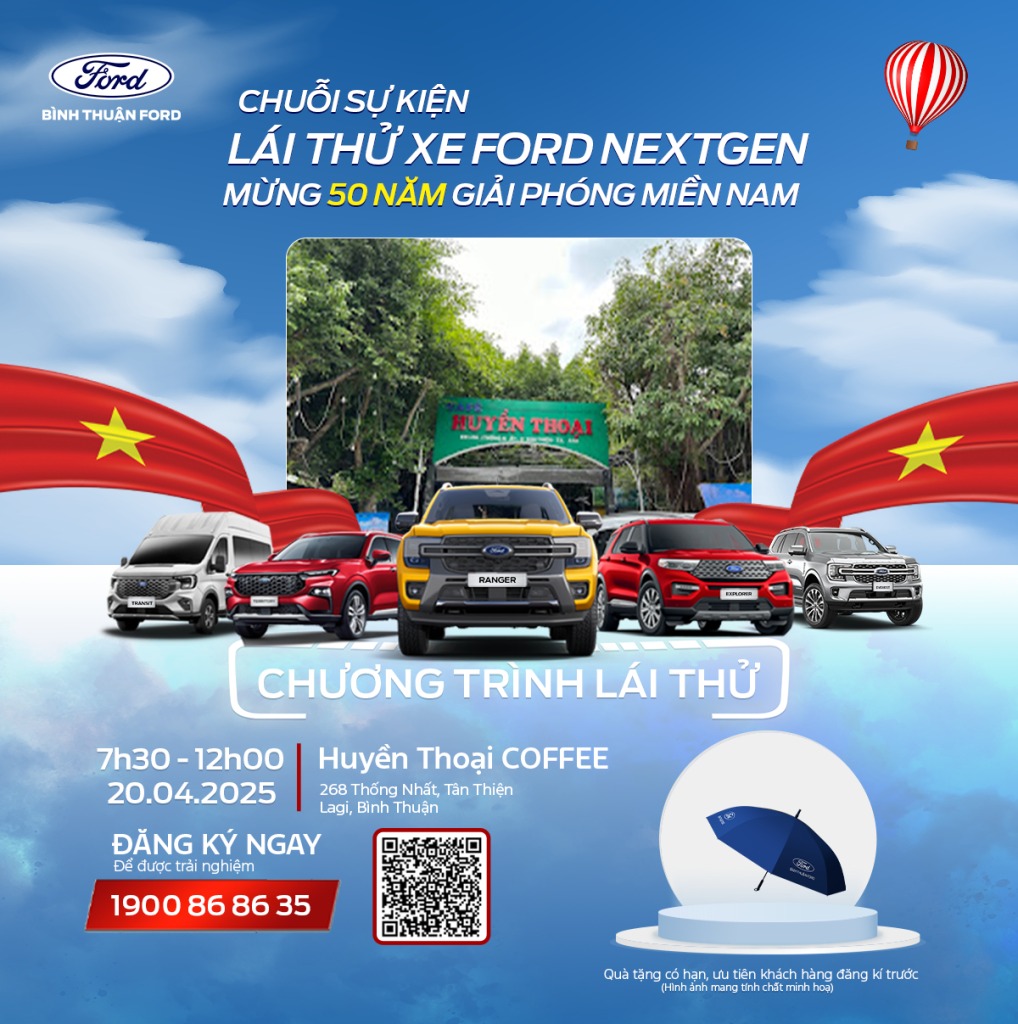 Cuối tuần này, hãy cùng Bình Thuận Ford hòa mình vào chuỗi sự kiện lái thử xe sôi động, mừng đại lễ 30/4 và kỷ niệm 50 năm ngày giải phóng miền Nam!